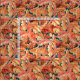 This is a pattern of red, yellow and orange fall acanthus leaves on a dark blue background, made based on William Morris (1834-1896).