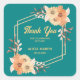 Fall Orange Flower Gold Teal Thank You Square Sticker