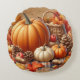 FALL ORANGE PUMPKINS AND BLACK WHITE PLAID PACKAGE ROUND CUSHION
