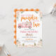 Fall Pumpkin Patch Watercolor Our Little Pumpkin Fall Pink Floral Pumpkins Harvest Truck Birthday Invitation with Orange Gingham pattern