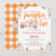 Fall Pink Floral Pumpkins Harvest Truck Birthday Invitation