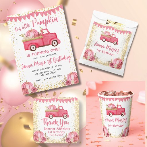 FALL PINK TRUCK PUMPKIN 1ST BIRTHDAYDesigned by Rosemarie Totillo