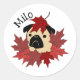 Fall Pug with Leaves Classic Round Sticker