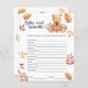 Watercolor cute teddy bear with an autumn pumpkin in its paws sits on autumn foliage.