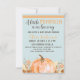 Fall Pumpkin Baby Shower Blue, Invitations. This pretty, muted, fall-coloured pumpkin invitation is perfect for any fall baby shower. The design features a beautiful blend of toned-down boho autumn pumpkins, flowers, and leaves. The background is a lovely pale blue that perfectly complements the orange, tan, greys, and, yellows. The font is a dual script that is easily personalised to make this your own. Please reach out if you have any questions. I'm always happy to help.