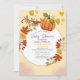 Celebrate a special day with this charming fall baby shower invitation featuring a rustic pumpkin, golden hearts, and autumn leaves. Perfect for a seasonal baby shower celebration, this elegant design sets the tone for a cosy and festive gathering.
