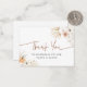 This boho fall baby shower thank you card features white and orange pumpkins with dried palm leaves. It will be the perfect way to thank your guests after your bohemian fall pumpkin baby shower. It features the text "thank you" in modern typography. Use the template fields to add your information and customise this card. Contact the designer if you need assistance with adding your information.