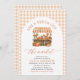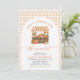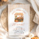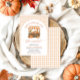 Celebrate the bride-to-be with the cosy charm of autumn! 🍂✨ This November-perfect bridal shower invitation features a cheerful orange gingham border and a whimsical pumpkin market stand, overflowing with fall florals, rustic crates, and harvest goodies! 🌻🎃🍎