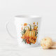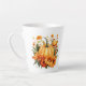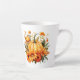 This ceramic latte mug is shown with a lovely fall floral pumpkin print.