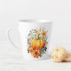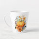 This ceramic latte mug is shown with a lovely fall floral pumpkin print.