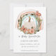 "Boho Fall Pumpkin Rainbow Mustard Blue Blush Floral Art Boy, Girl or Gender Neutral Baby Shower Invitation." Earth tone muted colours with a modern, simple, hand painted mustard, blush and dusty blue rainbow with a white pumpkin, moss green foliage and terra-cotta butterflies. The reverse side has many rainbows and cute elements and can have the background colour changed. Art by internationally licensed artist and designer, Audrey Jeanne Roberts, copyright.