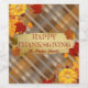 Personalised Thanksgiving bottle tag design featuring pumpkins, leaves and red berries on a autumn coloured plaid background. In the centre of the design there is a gold brushstroke and fully customisable text. To change it use the Personalise option. For more changes, such as changes to the font, font colour or text layout, use the Edit design tool option.