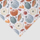 This design features a beautiful autumn-themed pattern with a focus on pumpkins and other fall harvest elements. The design includes various pumpkins in shades of orange, cream, and muted blue, each detailed with subtle watercolor textures. Complementing the pumpkins are elements like corn on the cob, autumn leaves in warm earthy tones, berries, and slices of pumpkin pie. The pattern is set against a crisp white background, allowing the rich colours and detailed illustrations to stand out. This design captures the essence of the fall season, evoking feelings of warmth, harvest, and festive celebration.