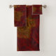 Thankful autumn rustic red gold neon dark maple leaves fall themed Thanksgiving bath towels set of 3. Elegant, modern bathroom decor. Image copyright Marg Seregelyi Photography.
