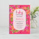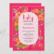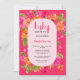 Boho fall pink, orange floral script gender neutral baby shower invitation featuring pretty hand painted pink, orange and green colours with a round mask. Perfect for fall boho themed baby shower party. With a modern script typography with retro pink and neon pink..