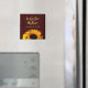 It was a bit smaller than expected, but I was too excited to check dimensions. The product itself send well printed though the grey text is a bit paint. Magnet worked perfectly on my fridge.