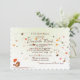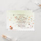 A delightful invitation featuring blowing autumn leaves and a little bird holding an orange umbrella. Want to save money? Print on the basic square corner paper.