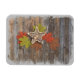 Fall coloured jute leaves surround two stars and two small hearts resting on rustic fence boards. The composition creates layers of texture and style to the artwork. The original photo is masked to blend seamlessly with a variety of backgrounds.