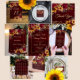 Fall wedding Burgundy roses yellow sunflowers greenery burgundy background personalised monogram printed napkins template personalised wedding decor