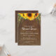 This rustic rehearsal dinner invitation features a fall watercolor graphic of sunflowers and greenery that appear across the top. The background is dark wood and the design is accented with handwritten style text.