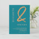 Modern chic fall autumn gold, teal and blush pink with an ampersand names photo wedding on editable teal. A simple, modern and minimalist wedding invitation. All colours are editable.
