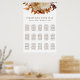 This elegant wedding seating chart features hand-painted watercolor burnt orange and terracotta leaves, cream and beige dahlias, and beautiful rust-coloured roses perfect for a fall or autumn wedding! This seating chart includes 15 tables with 10 people at each and easily customise for your wedding.