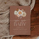 Invite guests in style with this terracotta “Spice Spice Baby” baby shower invitation from Redwood & Vine Design Co. Featuring a playful pumpkin spice latte illustration and autumn floral accents, this design blends seasonal charm with modern warmth. Fully customisable with your event details and perfect for fall or rustic celebrations.