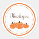 This thank you sticker is the perfect addition to your fall treat packaging. It says "Thank you" in orange with 3 pumpkins.