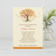Modern and elegant bridal shower invitation, ideal for an autumn or fall event. Features a tree with leaves in solid colours and two hearts hanging from it to symbolise the bride and groom. A solid colour border on the bottom completes this pleasing design. Add your own wording.