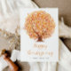 simple script happy thanksgiving holiday card with fall tree leaves. The text and back colour can be personalised.