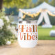 This stylish and vibrant fall design features the phrase "Fall Vibes" in a bold, retro-inspired font that exudes a warm and inviting energy. The text is set in a playful mix of autumnal colours, including rich oranges, soft pinks, and warm browns, perfectly capturing the essence of the season. Surrounding the text are small star-like sparkles that add a touch of whimsy and magic, enhancing the overall festive feel of the design. The large, chunky letters with their soft curves give the design a vintage yet contemporary appeal.