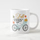 The "Fall Vibes" design is a charming and whimsical illustration that perfectly captures the essence of autumn. The central element of the design is a vintage-style bicycle rendered in a soft, pastel blue colour. The bicycle has a classic, retro look with curved handlebars and a basket attached to the front.