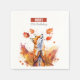 Cute birthday party paper napkins featuring a colourful watercolor fox and fallen leaves. Orange colours. For fall / autumn-born kids.