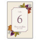 Fall Watercolor Autumn Leaf Wedidng Table Number