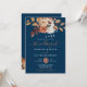 Fall watercolor floral on navy blue wedding invitation. Customise names, dates, and information.
