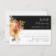 These elegant wedding reply cards feature a modern watercolor fall floral design on a black background. Personalise with your text. Matching invitations and other wedding suite products also available.