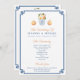 Smart Chinoiserie Chic wedding program design in navy blue and white featuring pops of Autumn colour and a Greek Key border.