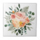 Fall Watercolor Rustic Pink Peach Flower Bouquet Tile