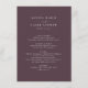 Designed to coordinate with the Lea Delaveris Design fall leaves autumn wedding collection, this wedding reception menu simple type and a season plum background. The text is customisable, allowing you to list all the meal offerings.