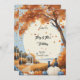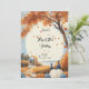 Fall wedding invitations with blue and white pumpkins and falling leaves from the tree. Customise with your information.