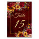 Fall wedding Burgundy roses yellow sunflowers greenery burgundy background gold frame floral wedding table number card