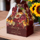 Fall wedding Burgundy roses yellow sunflowers greenery burgundy background personalised thank you favour gift boxes.