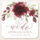 Fall Wedding Burgundy Wine Red Floral Foliage Square Paper Coaster