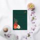 Elegant Gold foil invitation lettering forest green background is complemented by colourful autumn dahlias, roses, anemone, wheat stalks and monarch butterflies to make a striking but simple wedding invitation. The Monarch butterfly emphasizes the gold foil text on the front and the couple photo on the back for a truly autumnal wedding theme.