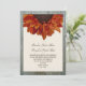 A fall wedding invitation featuring an image of barnwood framing the front side. Image of orange sunflower peeking from top. Personalise the text with details of your occasion. Back side is barnwood image.