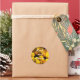 The sticker is made on wonderful paper and had no problem sticking to the bag that I purchased to put it on. I wanted to find a design that would be cute for the bride and groom and this one fit the bill as it has cute "bees" buzzing around and the wedding was taking place in a town called "Bee Cave". The packaging was great and protected the stickers. The website is easy to navigate and there are so many color choices. I had no problem finding a color that the bride was using on everything else selected. The design was adorable and there were many to choose from. You can make the figure as larger or smaller and you can place the photo and writting whereever you want to in the sticker. The printing is fabulous..better than expected.