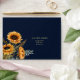 Fall rustic wedding navy blue with yellow sunflowers greenery navy blue background floral wedding delivery address envelopes