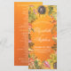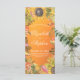Wedding Program Rack Cards Templates - Elegant Autumn Maple Leaves, Pumpkins and Sunflowers Watercolor Flowers on Orange Gradient Background.