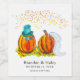 A simple rustic fall wedding design with hand drawn art featuring unique wedding bride and groom pumpkins. Great for customisation with the couple's names and special date underneath for a personal touch.