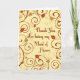 Autumn wedding thank you maid of honour greeting card in elegant and classic fall colours, with festive leaves and swirls pattern. The perfect way to thank your Thanksgiving or fall wedding bridal party. Also available in invitations, labels, and envelopes.